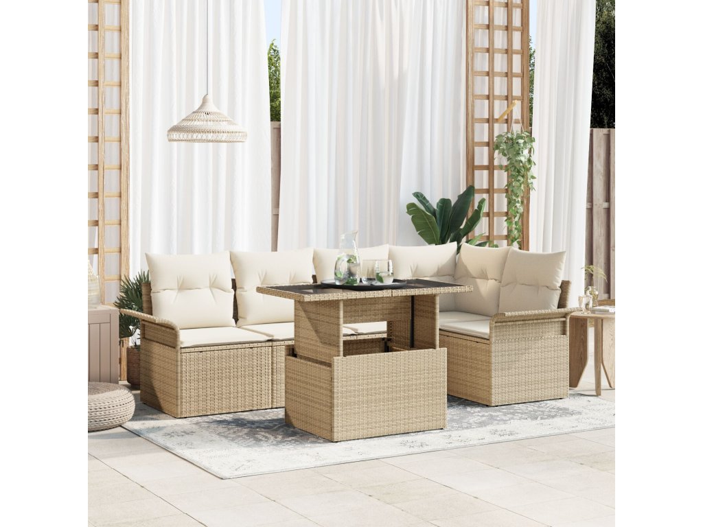 Sada zahradních pohovek s polštářem 6 pcs Béžová polyratan