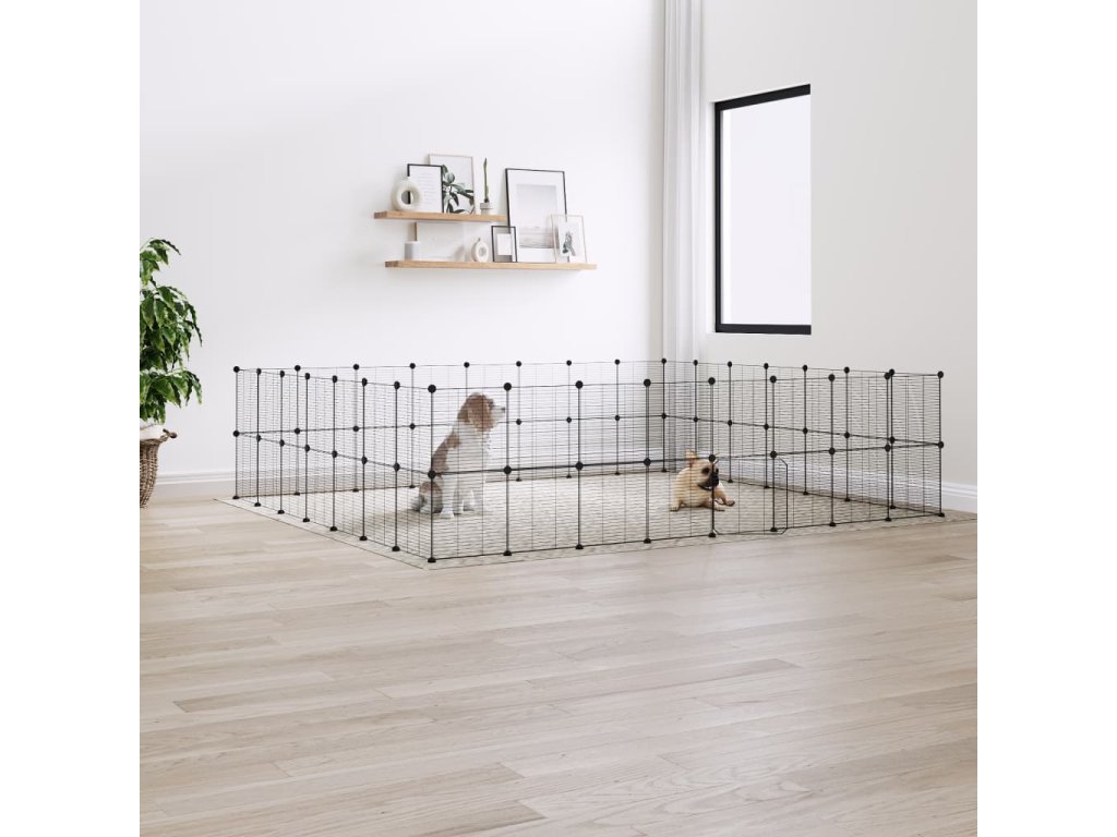 60panelová ohrádka pro zvířata s dvířky černá 35 x 35 cm ocel