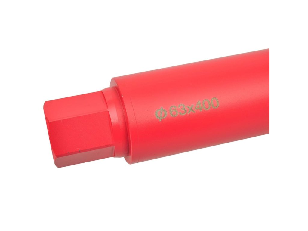 Náš velmi kvalitní a robustní 63 x 400 mm jádrový vrták do elektrických jádrových vrtaček je vhodný na vrtání žuly, tvrdého kamene, betonu, zpevněných betonových povrchů a jiných pevných materiálů. Jelikož je tento vrták velmi kvalitní, chod vaší vrtačky bude hladký.