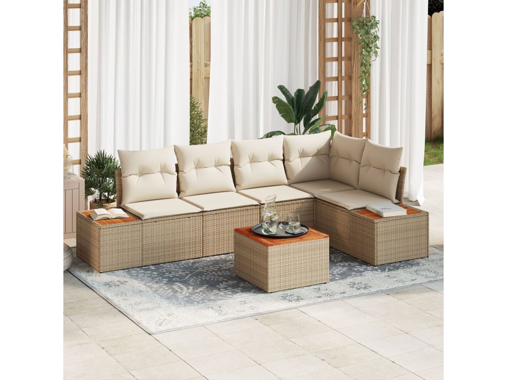 Sada zahradních pohovek s polštářem 6 pcs Béžová Poly ratan