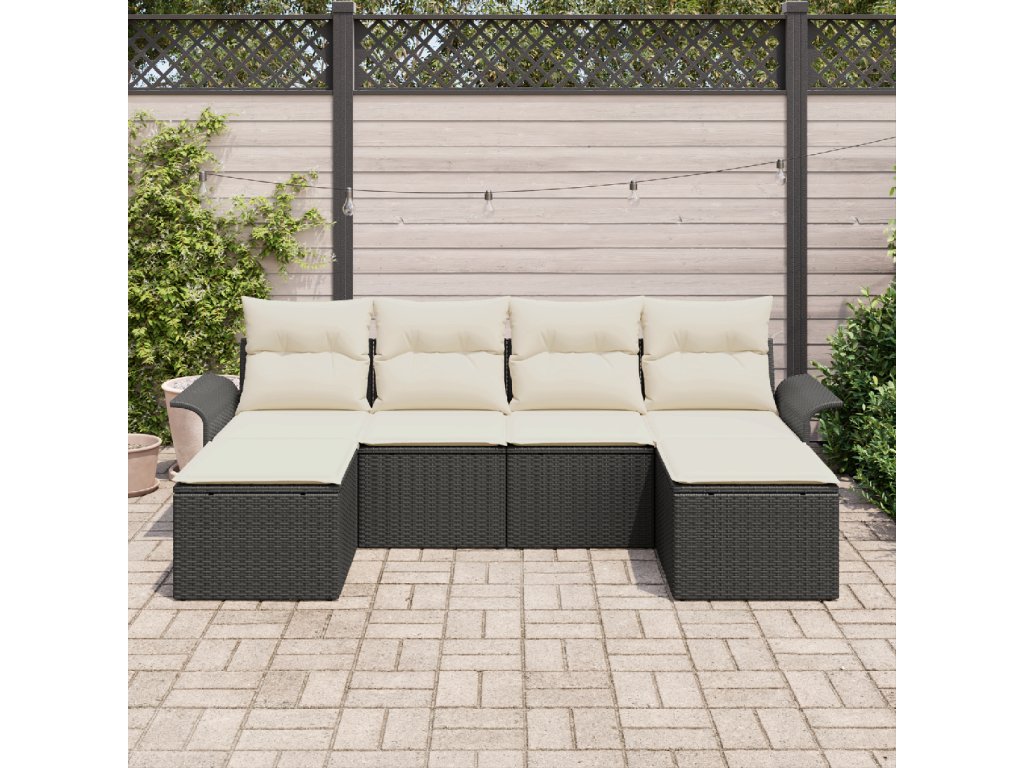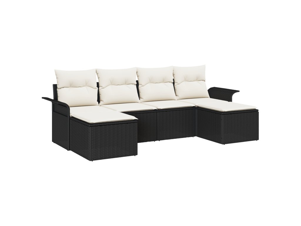 Sada zahradních pohovek s úložištěm 6 pcs Černá polyratan