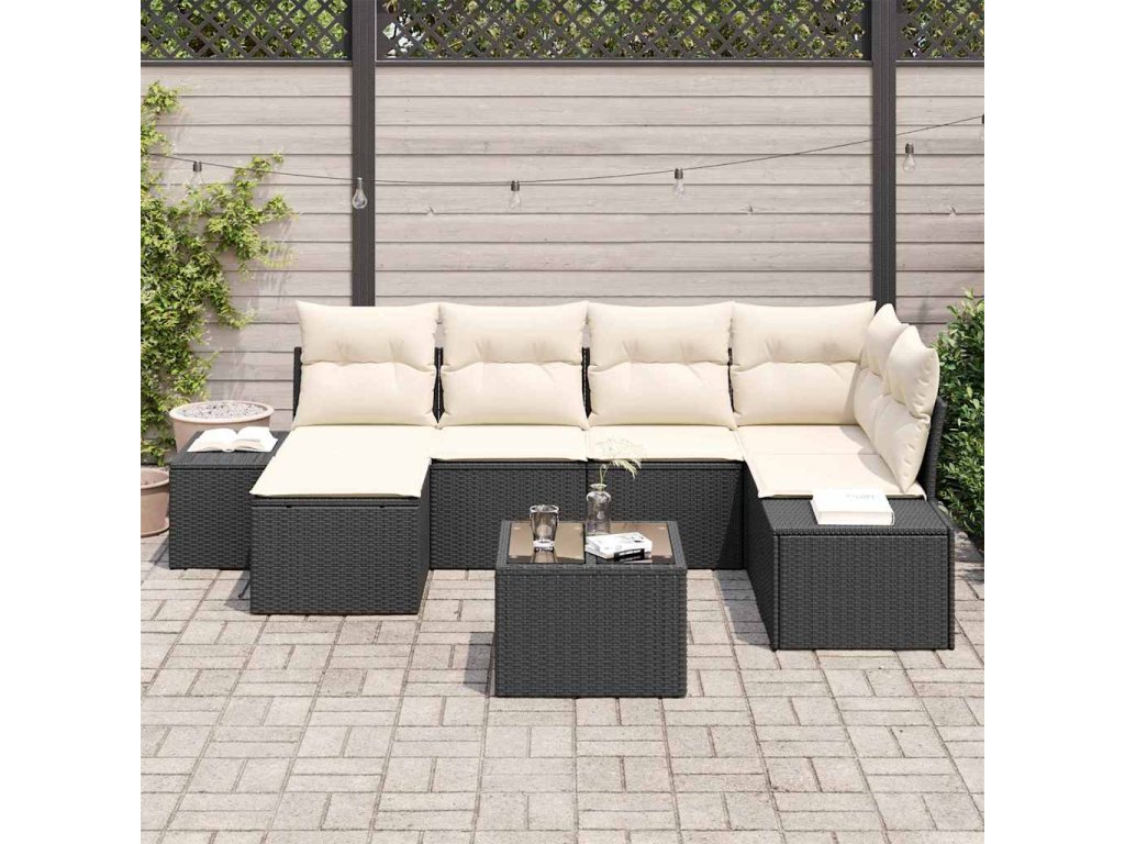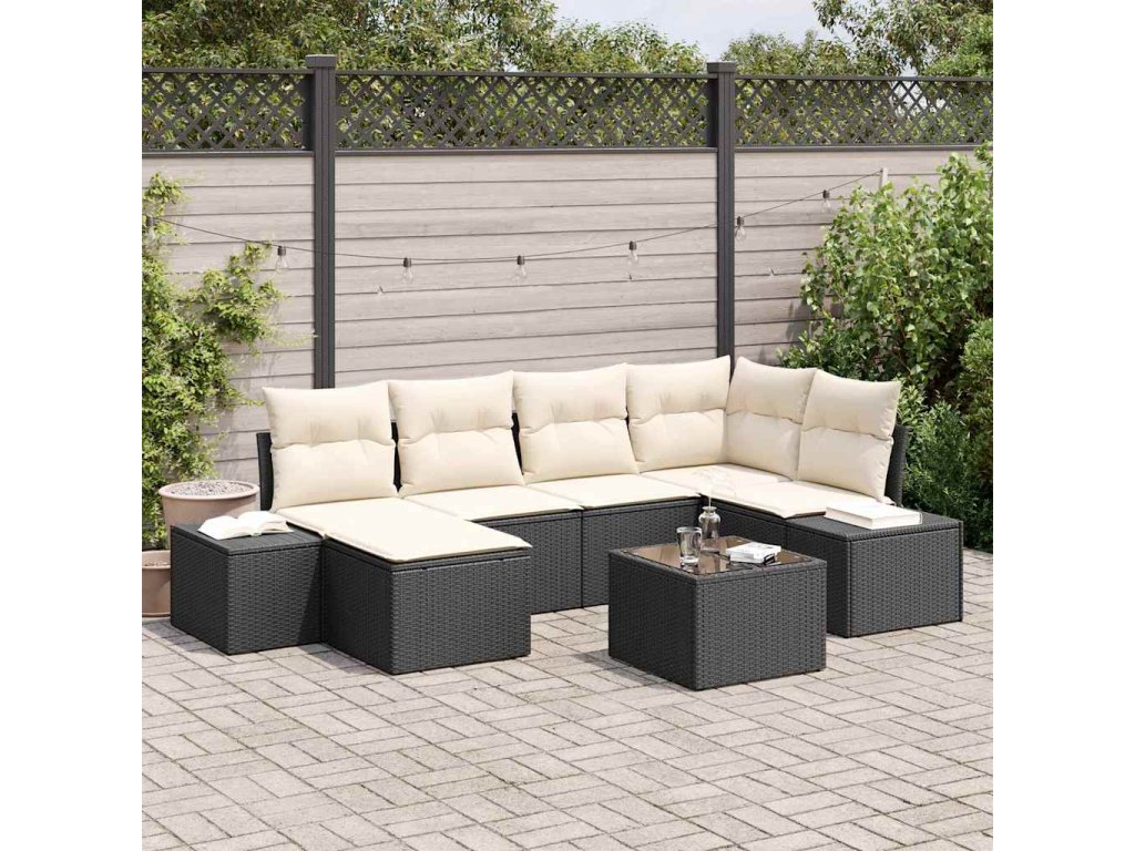 Sada zahradních pohovek 6 pcs Černá a krémová polyratan