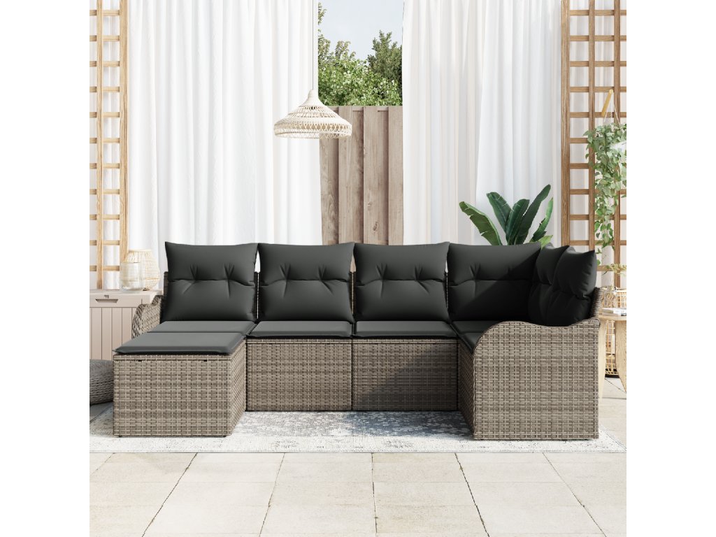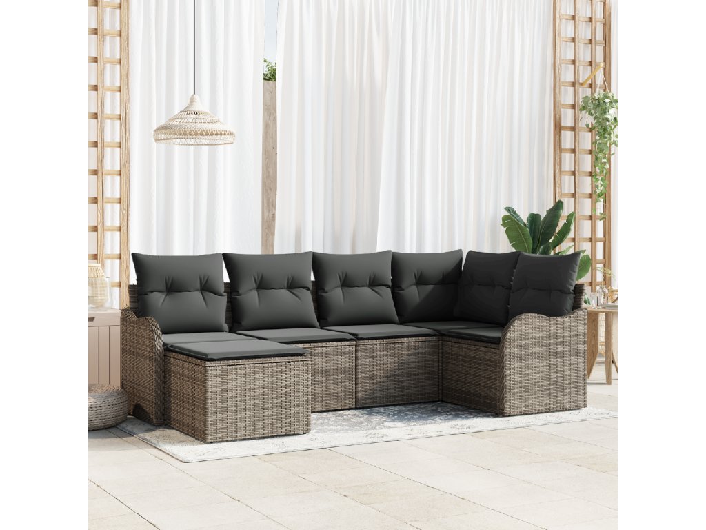 Sada zahradních pohovek s polštářem 6 pcs Šedá Poly ratan