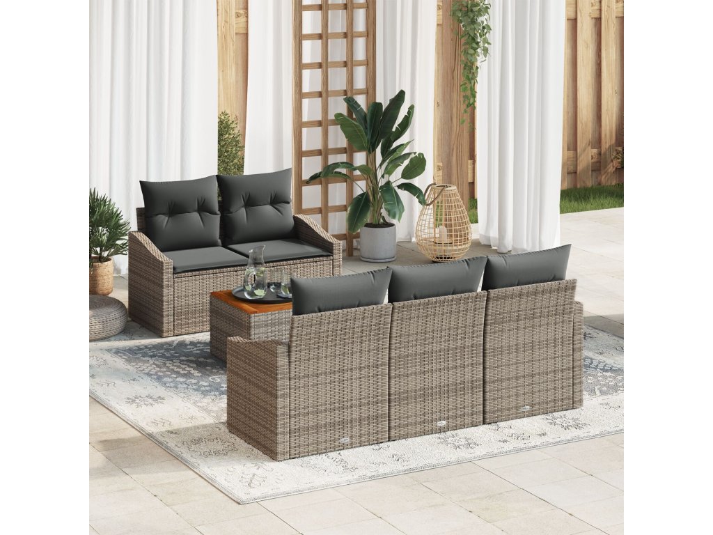 Sada zahradních pohovek s polštářem 6 pcs Šedá Poly ratan