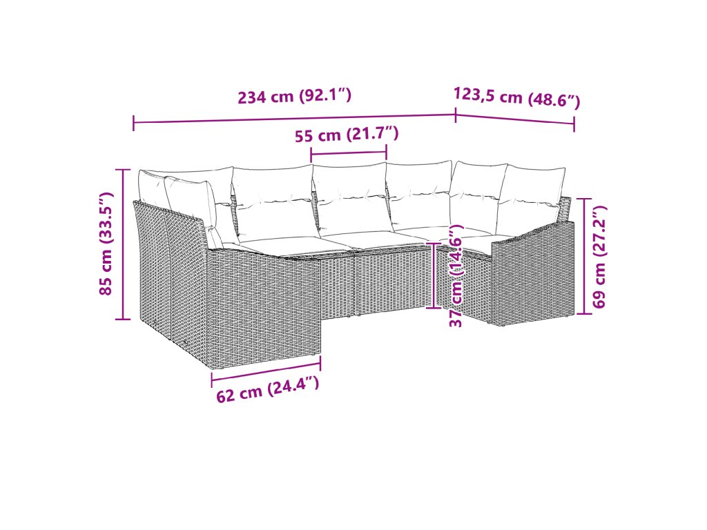 Set pohovek s polštářem 6 pcs Světle šedá polyratan