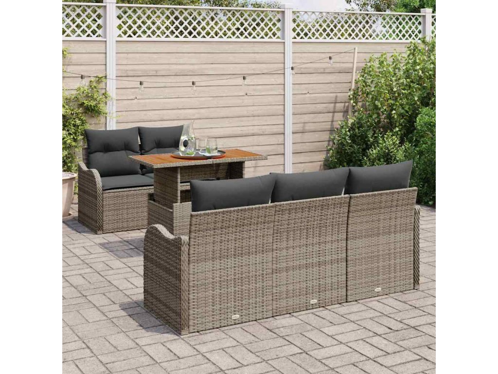 Sada zahradních pohovek s úložištěm 6 pcs Šedá Poly ratan