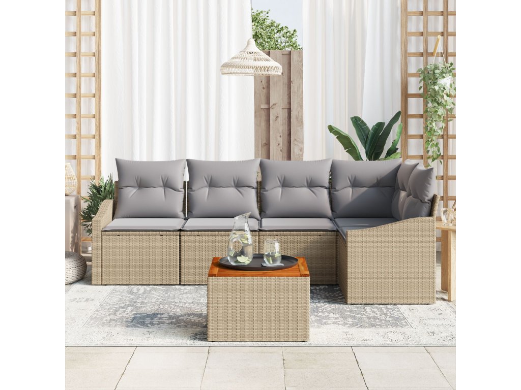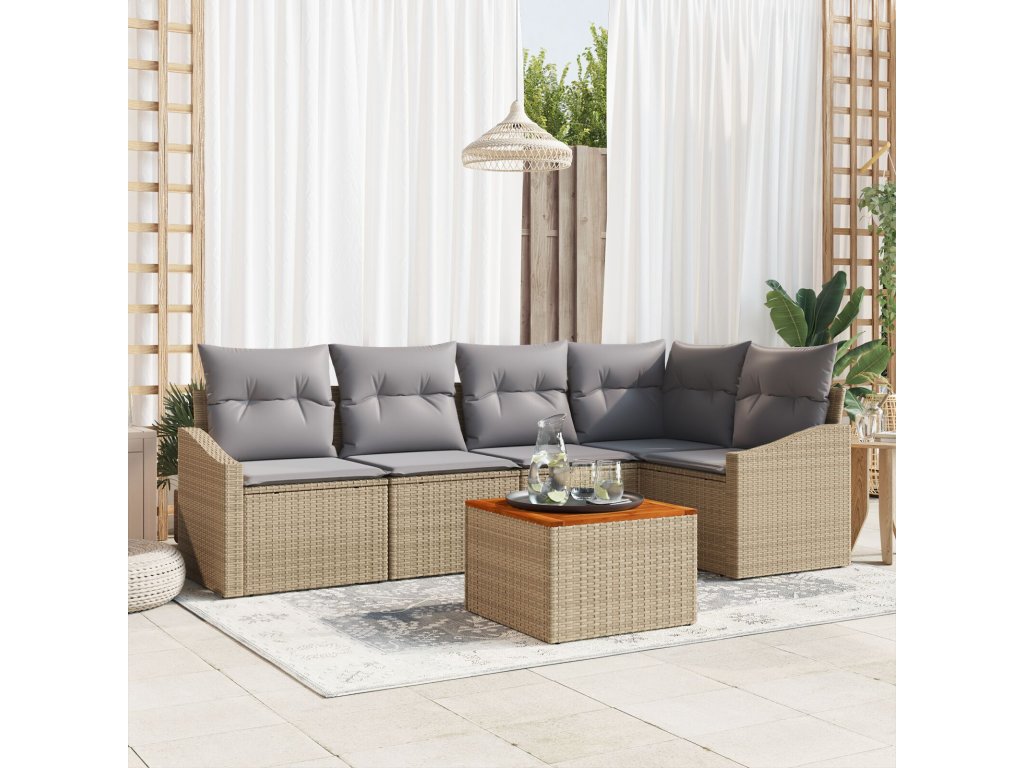 Sada zahradních pohovek s polštářem 6 pcs Béžová Poly ratan