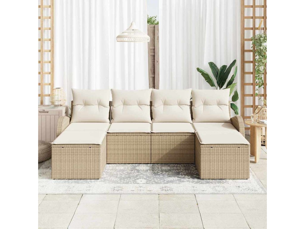 Set pohovek s polštářem 6 pcs Béžová a bílá polyratan