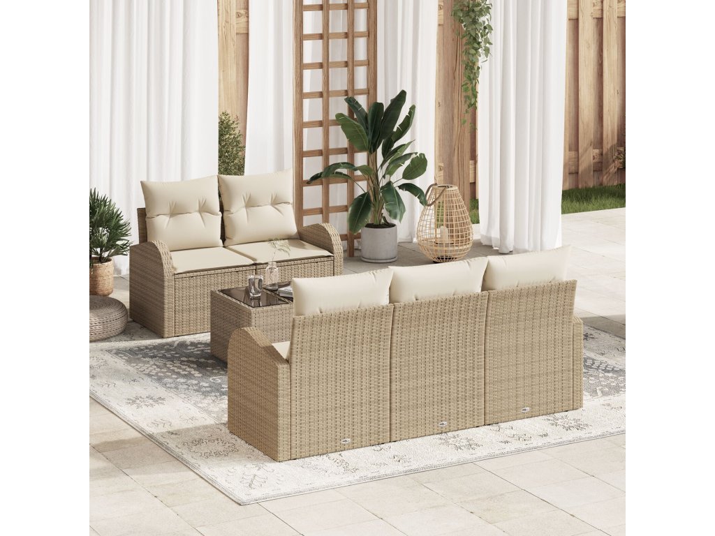 Materiály: Sada je vyrobená z kvalitního poly ratanu, který vypadá skvěle a je šetrný k přírodě díky recyklovatelnosti. Robusní rám z práškově lakované oceli zajišťuje odolnost proti počasí a elegantní vzhled, který skvěle doplní každou zahradu. Tato kombinace zvyšuje trvanlivost a je snadná na údržbu. Zahrnuté komponenty: Sada obsahuje pohodlné sezení, včetně středního sedátka a opěrek na ruce s polštáři z polyesteru, které nabízejí měkké a podpůrné pohodlí. Všechny kusy mají pevné nohy z oceli, což zajišťuje stabilitu. Hlavním kouskem je stolek se skleněným povrchem, který nabízí další prostor na nápoje a dekorace a poskytuje kompletní lounge řešení. Vlastnosti / Funkce / Design: Navrženo pro příjemné venkovní užití, sada se pyšní UV-odolnými materiály, které si udržují svou kvalitu i na slunci, zatímco modulární konstrukce umožňuje snadné přesouvání pro různé uspořádání. Tento přizpůsobivý design vyhovuje různým společenským situacím a dává ti svobodu uspořádat prostor podle svých představ. Doporučené použití: Ideální pro zahrady a terasy, sada skvěle zapadne do letních venkovních aktivit, jako jsou neformální setkání, klidné osamění nebo živé večírky. Ať už je umístěná u bazénu, mezi bujnou vegetací nebo pod zastřešenou terasou, vytváří příjemnou atmosféru k odpočinku a užívání. Údržba a péče: Udržování soupravy v perfektním stavu je snadné – stačí ji jednou za čas otřít vlhkým hadříkem. Doporučuje se mít ochranný kryt během špatného počasí, aby se zabránilo opotřebování.- Barva: Béžová