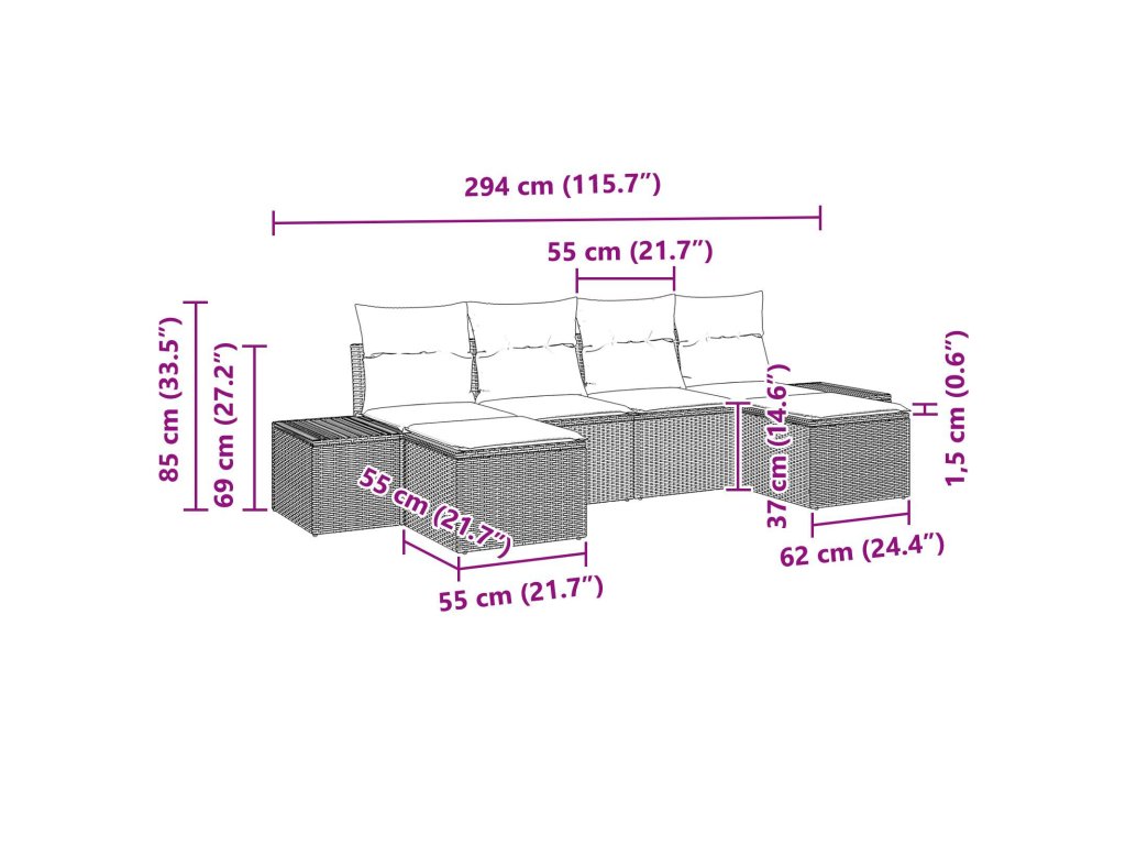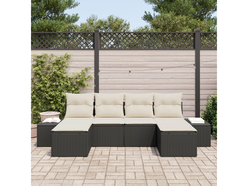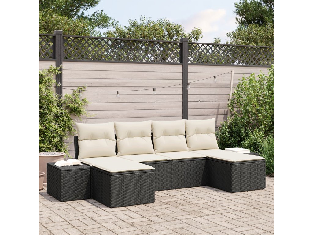 Sada zahradních pohovek s polštářem 6 pcs Černá polyratan