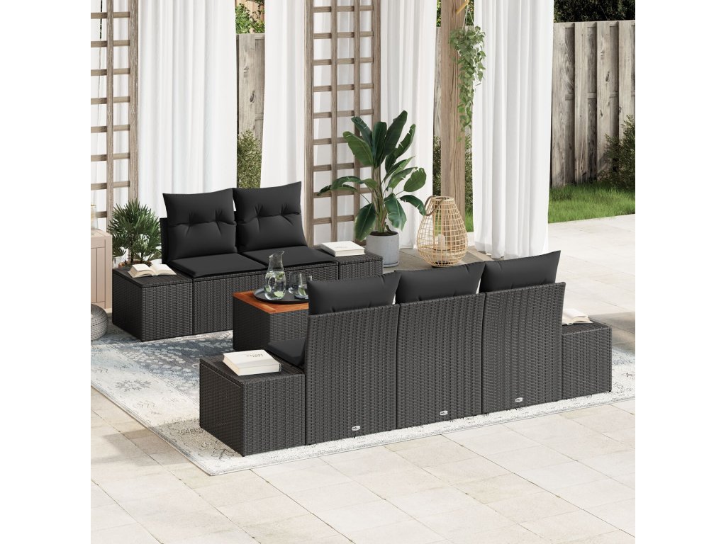 Sada zahradních pohovek s polštářem 6 pcs Černá Poly ratan