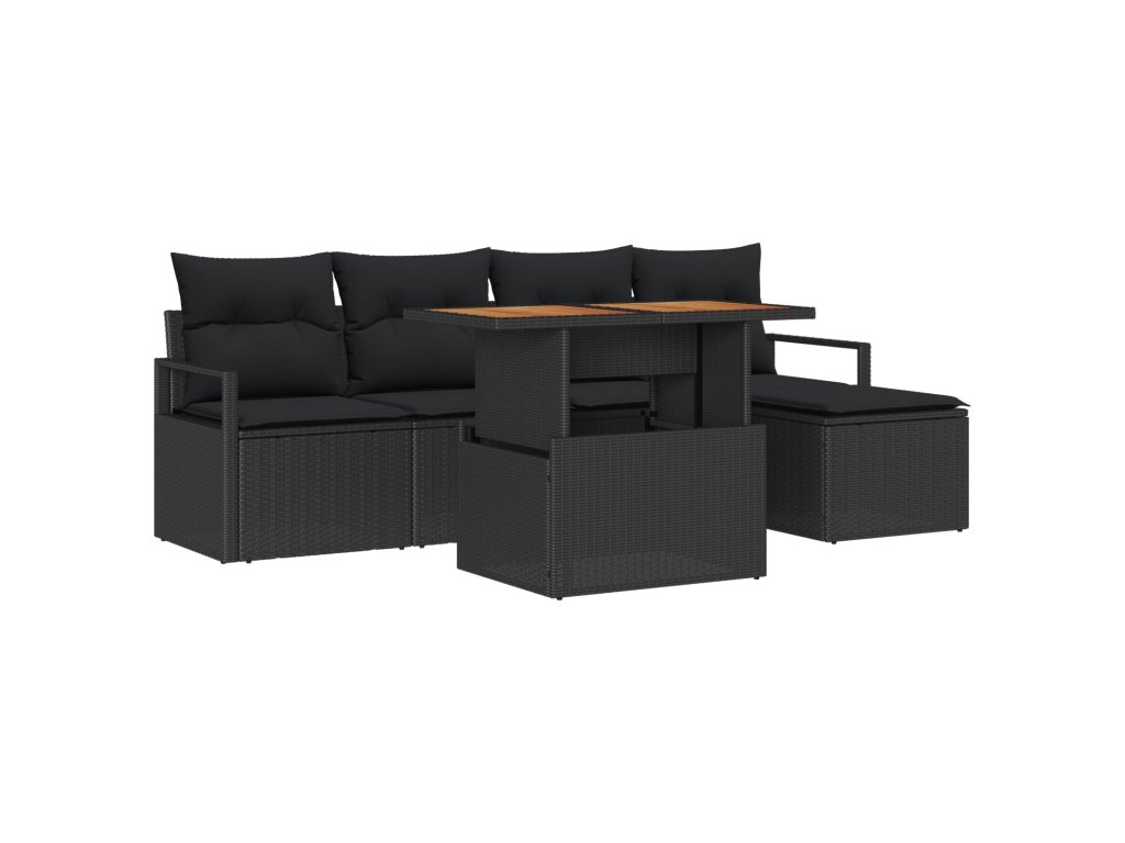 Zahradní jídelní souprava s polštářem 6 pcs Černá a hnědá