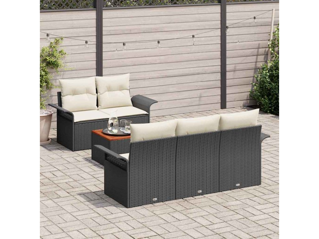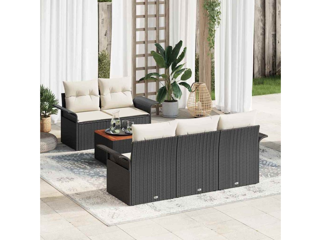 Sada zahradních pohovek s polštářem 6 pcs Černá a krémová
