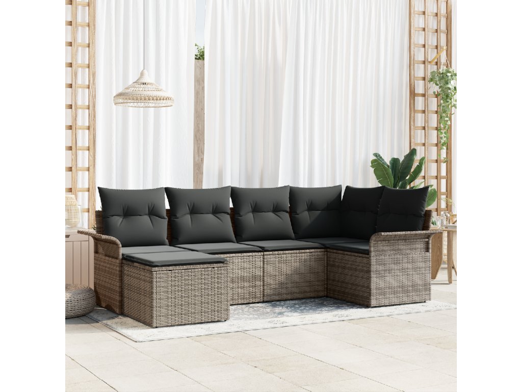 Sada zahradních pohovek s úložištěm 6 pcs Šedá polyratan