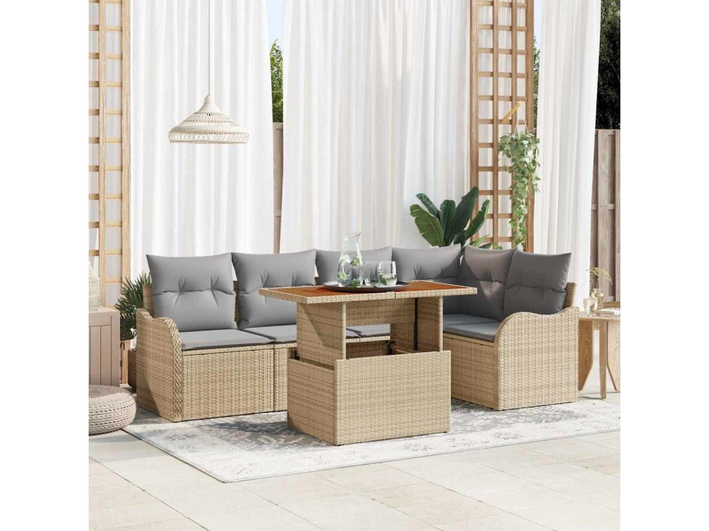 Sada zahradních pohovek s úložištěm 6 pcs Béžová Poly ratan