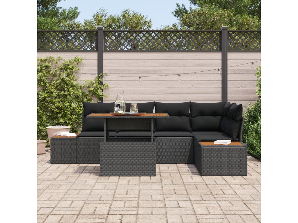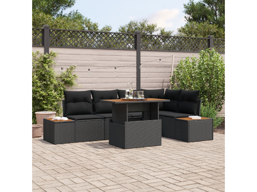 Zahradní jídelní souprava s polštářem 6 pcs Černá a hnědá