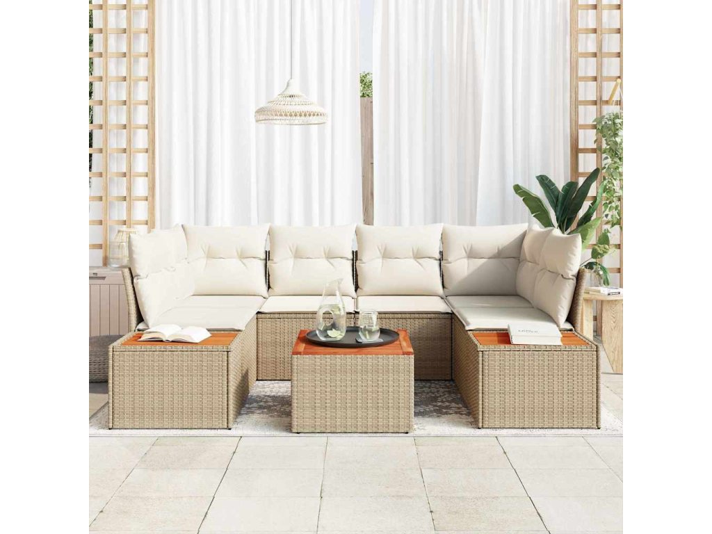Sada zahradních pohovek s polštářem 6 pcs Béžová Poly ratan