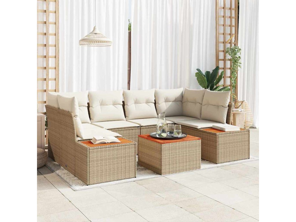 - Materiály odolné vůči povětrnostním vlivům: Vyrobeno z poly ratanu, polyesteru a akáciového dřeva, tato souprava je navržená tak, aby zvládla venkovní podmínky. Materiály zajistí, že zůstane hezká a funkční i při sluníčku, dešti a UV záření.