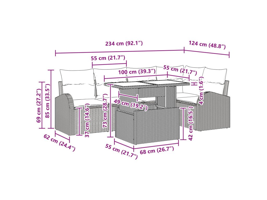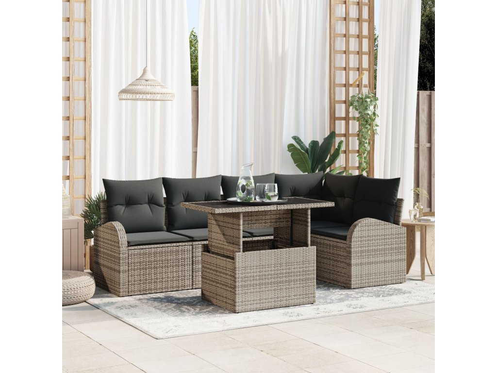 Sada zahradních pohovek s úložištěm 6 pcs Šedá polyratan