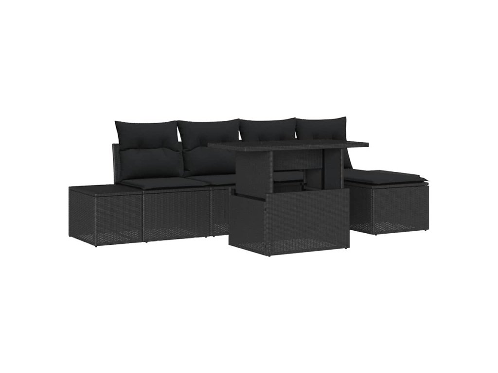 Sada zahradních pohovek s úložištěm 6 pcs Černá Poly ratan