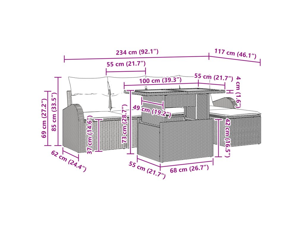 Tato zahradní jídelní sada s polštáři dodá vašemu venkovnímu prostoru moderní a praktický vzhled. S chytrým designem a čistými liniemi je vyrobená z kvalitního poly ratanu a práškově lakované oceli, které vypadají fajn a dlouho vydrží. Perfektní na jaro a léto, její tkaný povrch dodává příjemnou atmosféru do zahrad nebo na terasy, vytváří pohodlné místo k relaxaci. Každý kus byl promyšleně navržen, aby zvýšil jak vzhled, tak pohodlí vašeho venkovního obytného prostoru.