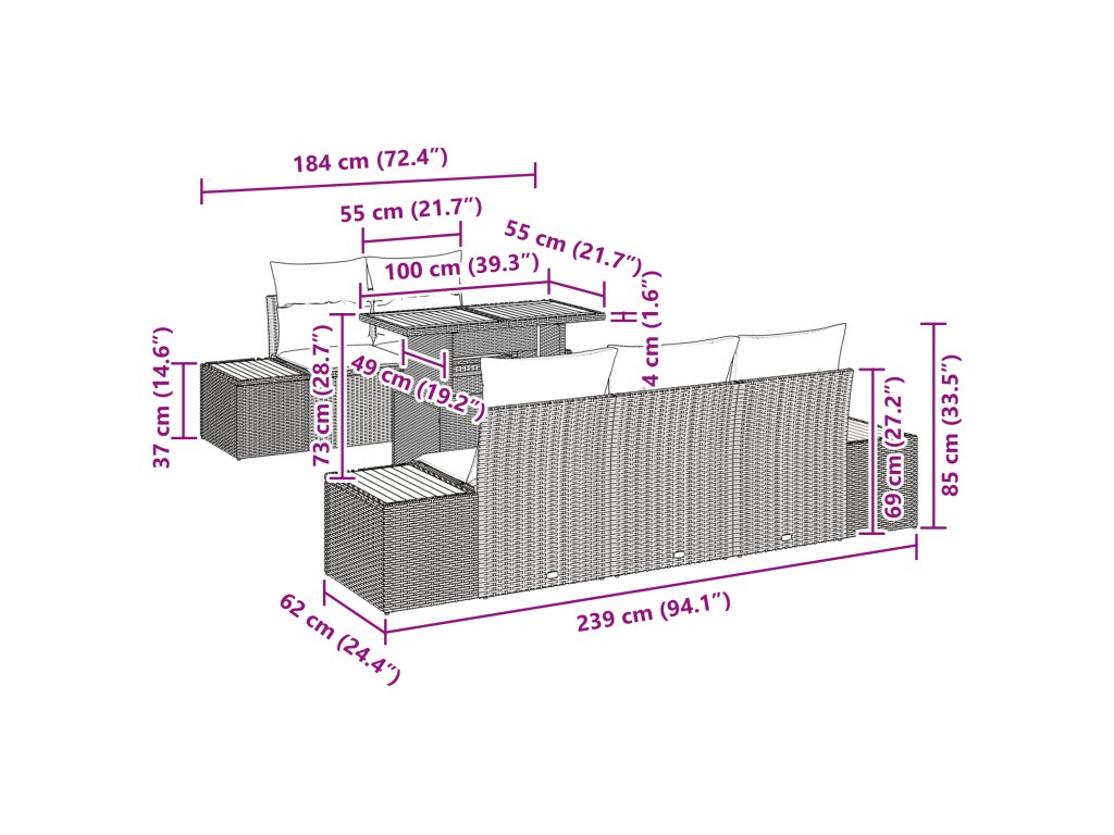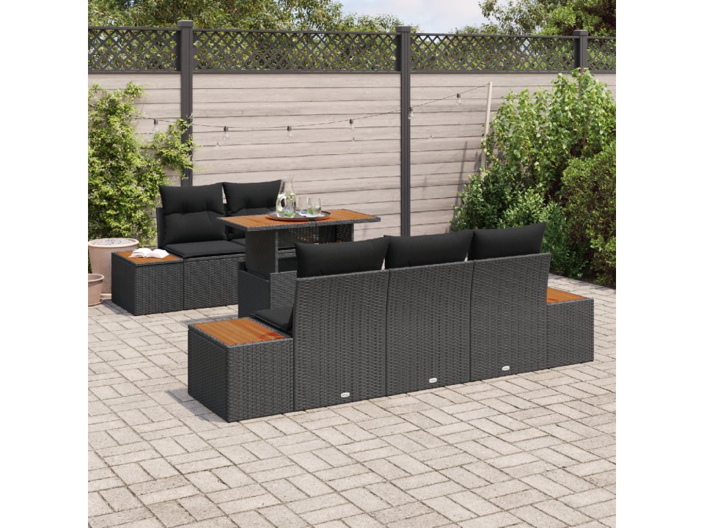 Poly Ratanová konstrukce: Tento materiál je opravdu odolný. Nevybledne na slunci a má hezký matný povrch, který vypadá skvěle a dobře se hmatá. Práškově lakovaný ocelový rám: Solidní jako skála! Je navržený tak, aby zvládal počasí a dlouho se nerezivěl a neopotřeboval. Akáciový dřevěný povrch: S pevnými akáciovými dřevěnými plochami získáváš trvanlivost a hezký hnědý vzhled, suitable for co skvěle ladí s poly ratanu. Flexibilní modulární design: Možnost kombinace se vyplatí! Můžeš to uspořádat různými způsoby podle toho, suitable for co potřebuješ. Perfektní pro každou příležitost. Jednoduchá údržba: Aby tvoje zahrada vypadala super, stačí ji zakrýt, když ji nepoužíváš. Rychlý úklid hadříkem udrží všechno v cajku a polstry se snadno sundávají na mytí, takže tvá sada zůstane svěží.- Barva: Černá a hnědá