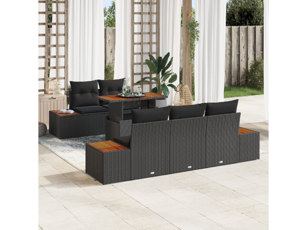 Zahradní jídelní souprava s polštářem 6 pcs Černá a hnědá