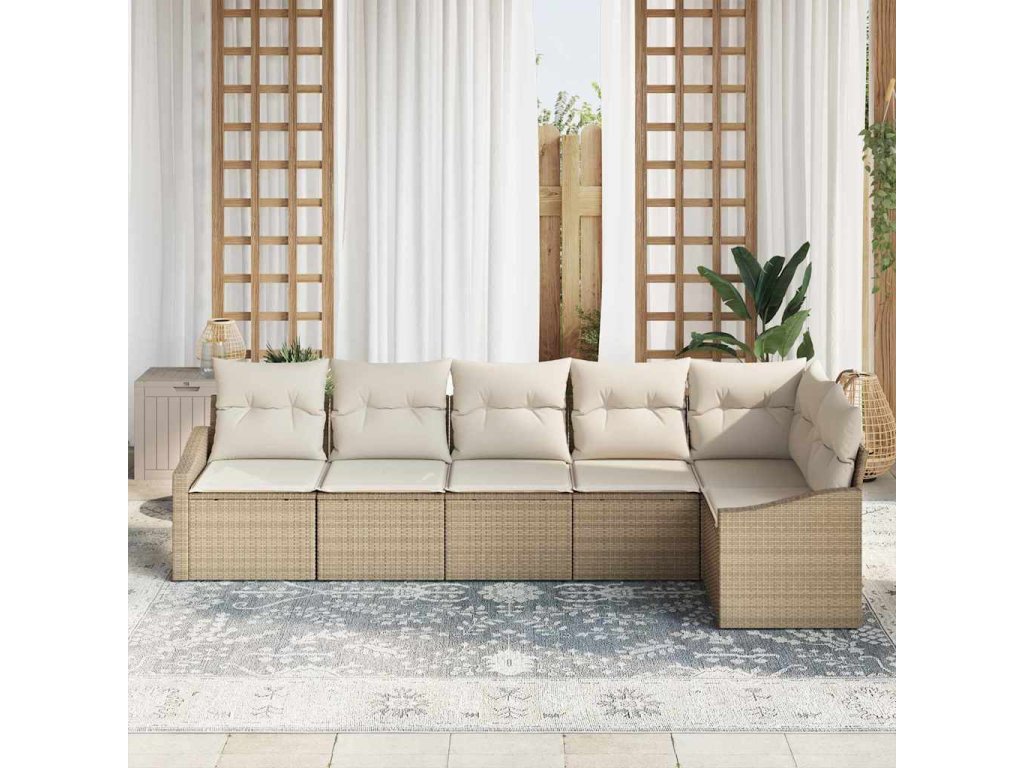 Set pohovek s polštářem 6 pcs Béžová a krémová polyratan