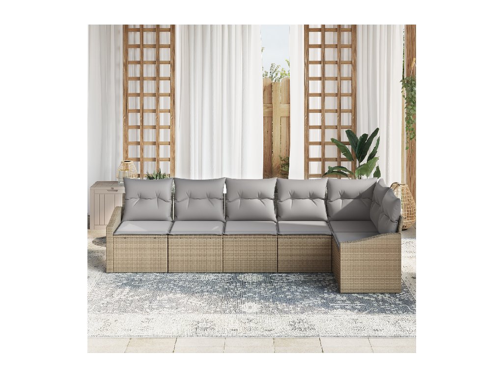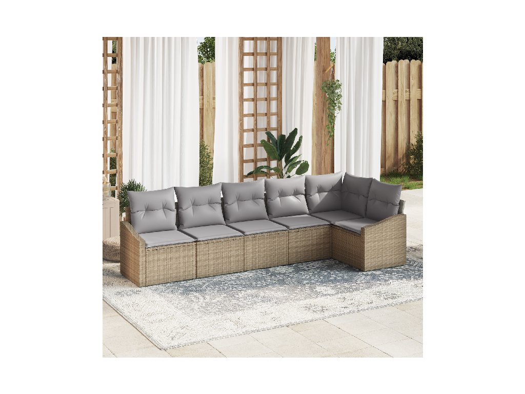 Set pohovek s polštářem 6 pcs Béžová a Světle šedá polyratan
