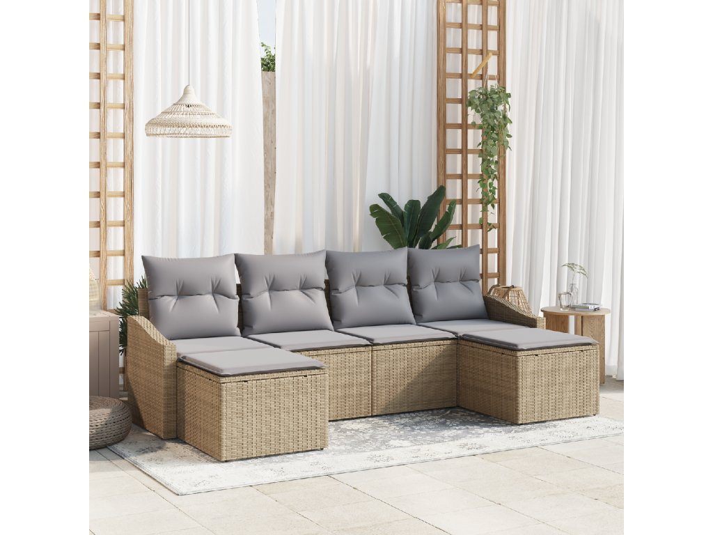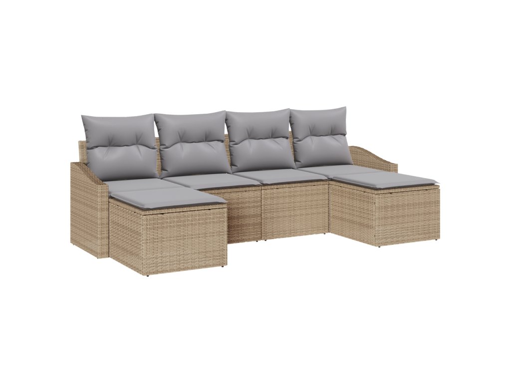 Materiály: Zahradní jídelní souprava je z kvalitního polyratanu, což ji dělá skvělou volbou pro venkovní nábytek. Poly ratan je odolný a stále vypadá skvěle. Díky práškově lakovanému ocelovému rámu je trvanlivá a stabilní v jakémkoli venkovním prostředí. Součásti: Obsahuje dvě středové sedačky, dvě pohovky s opěrkami rukou a dvě podnožky, které nabízejí dostatečné místo na sezení. Ergonomické opěrky rukou zajišťují pohodlí a zdokonalují zážitek. Každé sedadlo má polstrování s pěnovým polštářem a odnímatelný potah se zipem pro snadné čištění. Vlastnosti / Funkce / Design: Modulární design umožňuje přizpůsobit uspořádání podle potřeby. Obsahuje skryté úložné prostory v lavicích pro praktické uložení věcí. Materiály odolné vůči počasí vydrží slunce, déšť a další vlivy, což zajišťuje dlouhodobé používání. Doporučené použití: Ideální do zahrad a na terasy, souprava pohodlně pojme šest dospělých a podporuje příjemné konverzace. Ať už hostíte, jíte nebo si užíváte klidné odpoledne, sada přináší příjemnou atmosféru pro různé venkovní příležitosti. Údržba: Aby nábytek vydržel co nejdéle, používejte ochranný kryt, když není v používání. Pravidelně ho čistěte jemně, abyste odstranili prach a vyhněte se tvrdým chemikáliím, které by mohly materiál poškodit.- Barva: Béžová a světle šedá