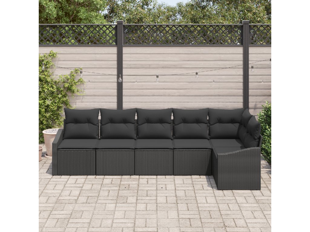 Set pohovek s polštářem s úložištěm 6 pcs Černá polyratan