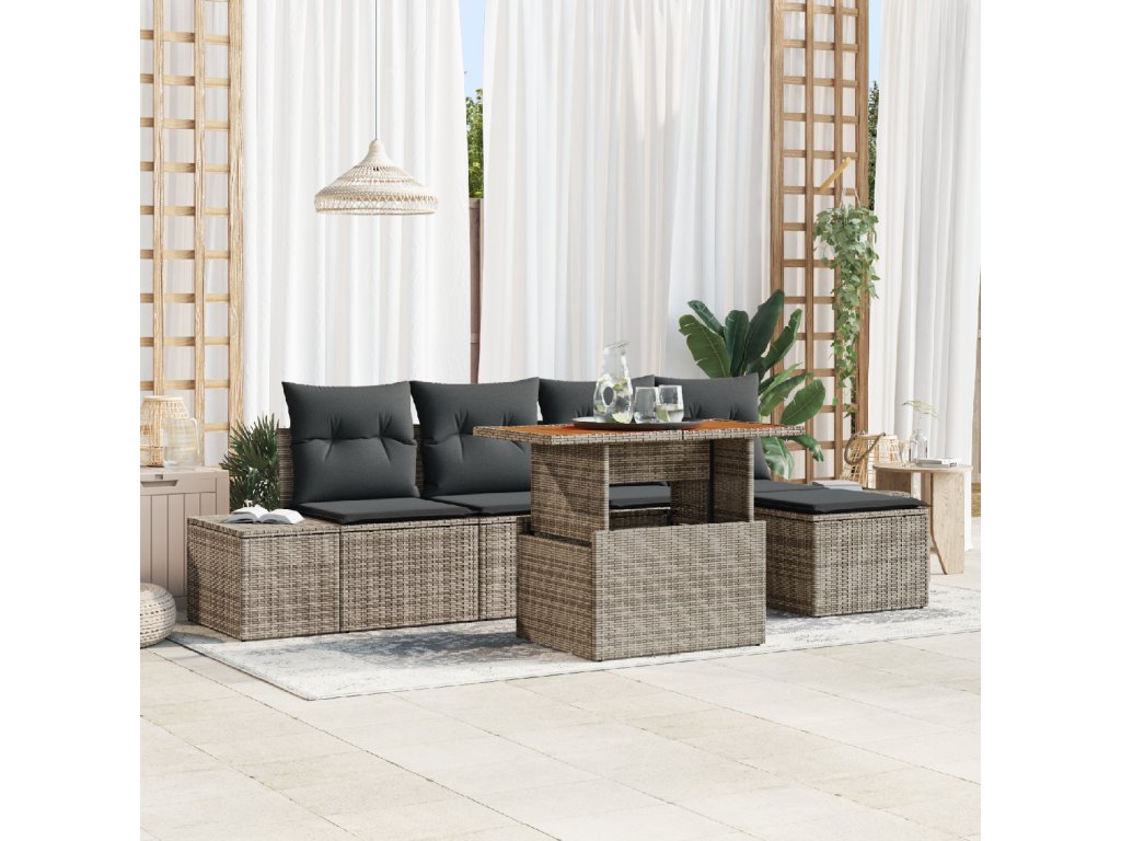 Zahradní jídelní souprava s polštářem 6 pcs Šedá a hnědá