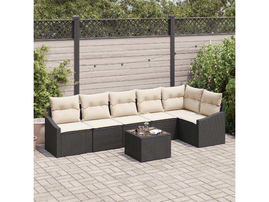 Set pohovek s polštářem 7 pcs Hnědá a krémová polyratan