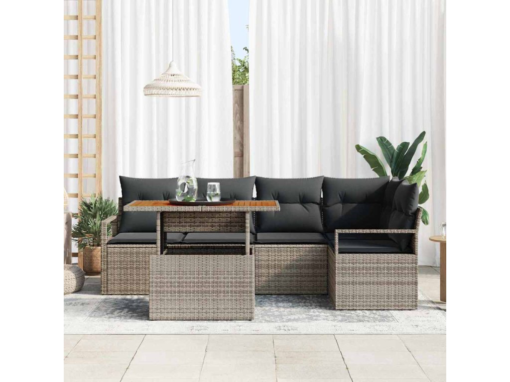 Sada zahradních pohovek s úložištěm 6 pcs Šedá Poly ratan