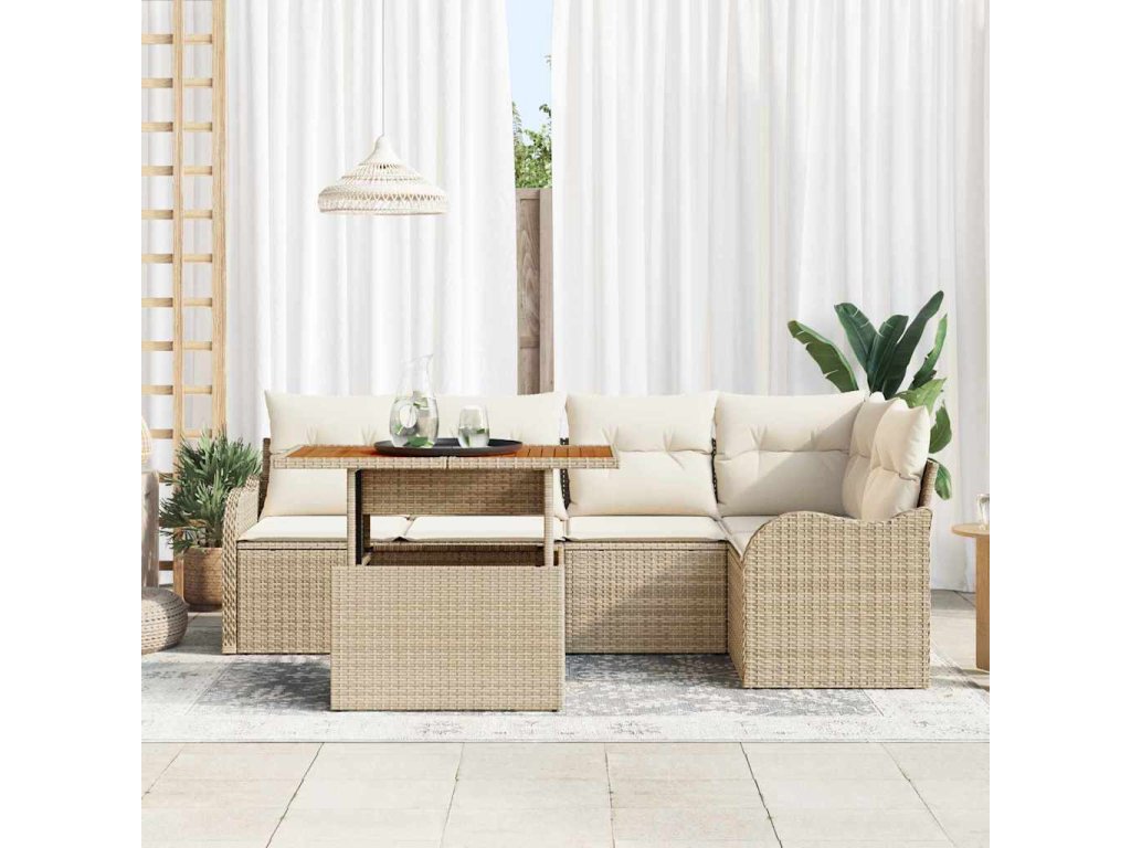 Sada zahradních pohovek s úložištěm 6 pcs Béžová Poly ratan