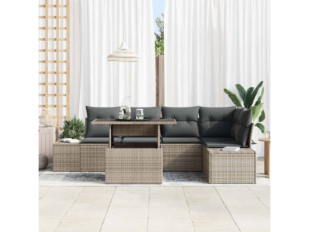Sada zahradních pohovek s úložištěm 6 pcs Šedá Poly ratan