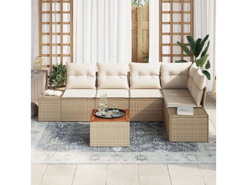 Sada zahradních pohovek s polštářem 6 pcs Béžová Poly ratan
