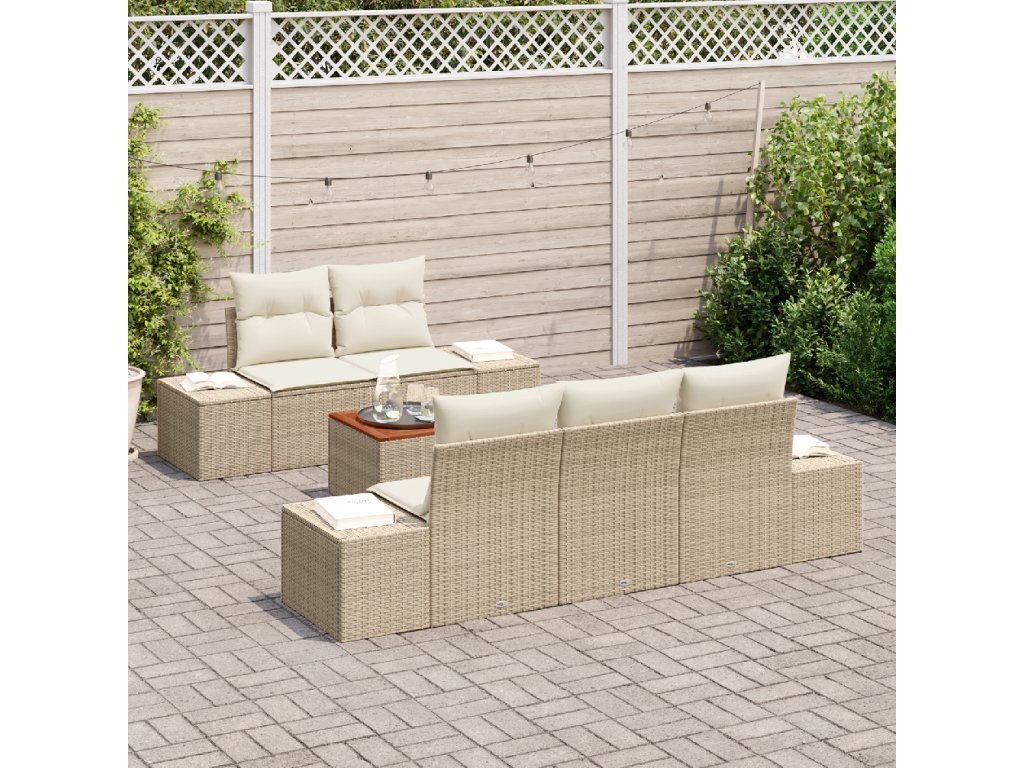 Sada zahradních pohovek s polštářem 6 pcs Béžová Poly ratan