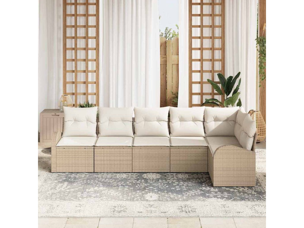 Set pohovek s polštářem s úložištěm 6 pcs Béžovo-bílá polyratan