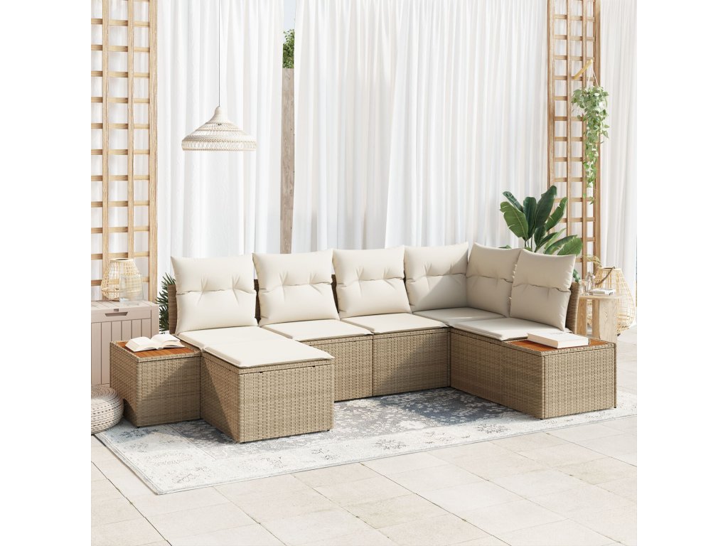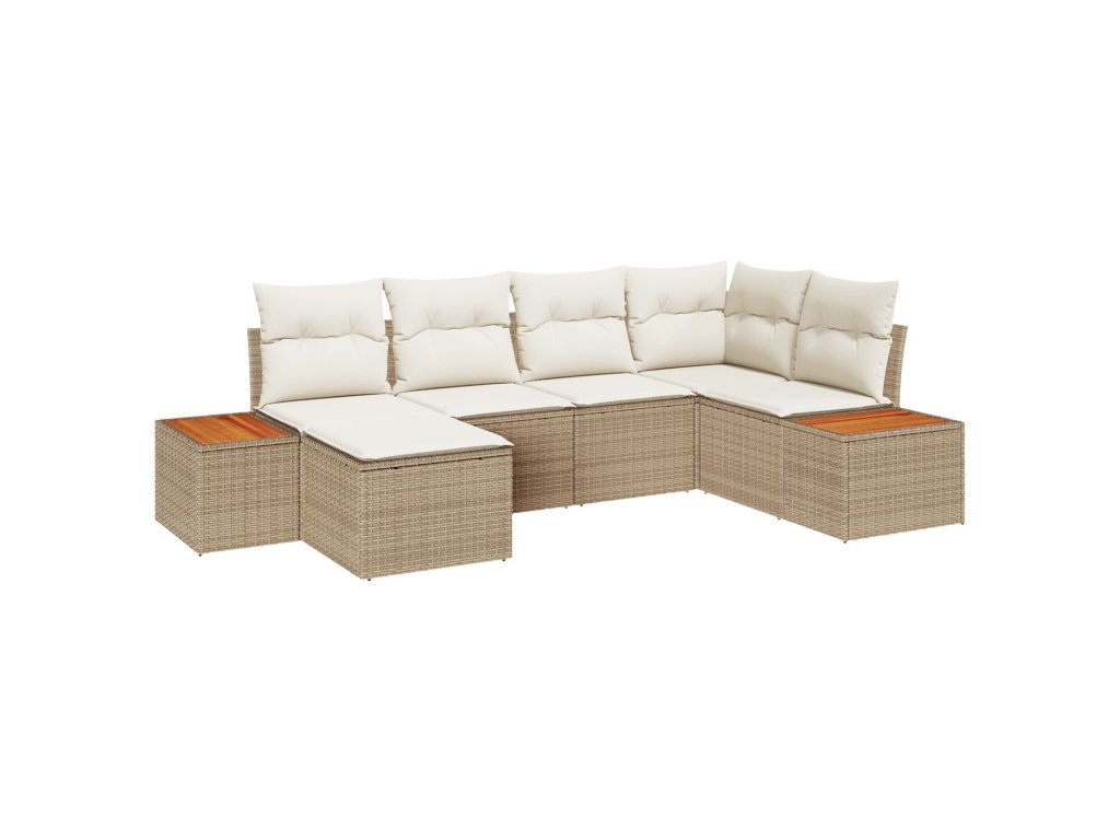 Sada zahradních pohovek s polštářem 6 pcs Béžová polyratan
