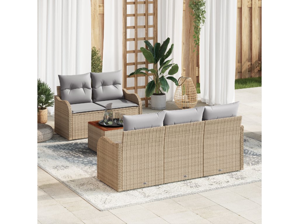 Sada zahradních pohovek 6 pcs Béžová Poly ratan