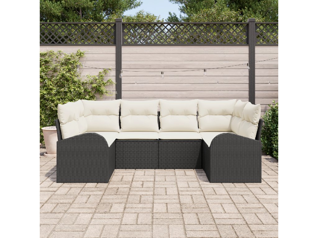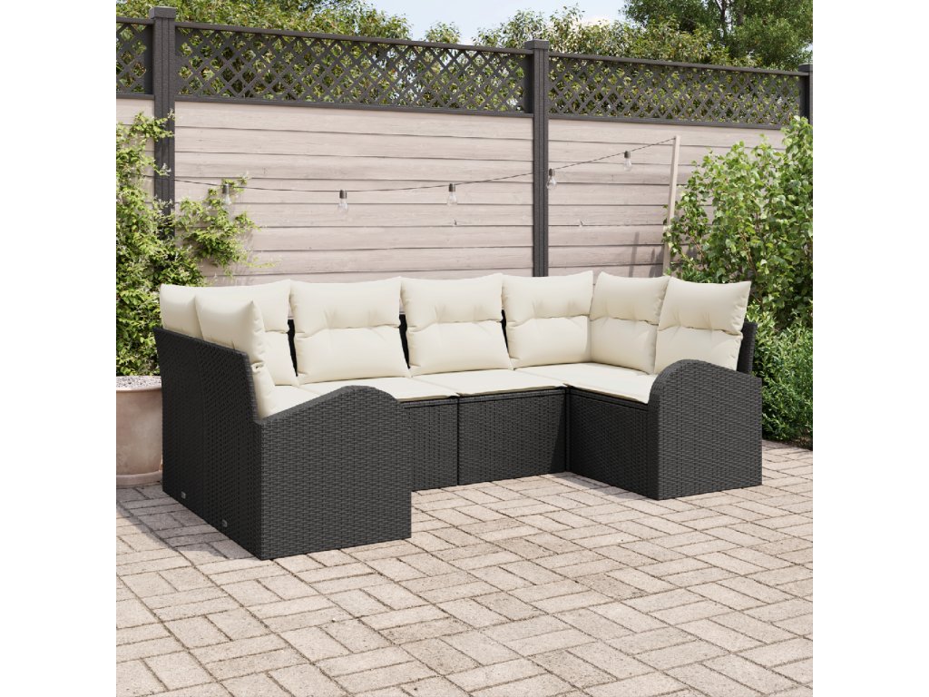 Sada zahradních pohovek s polštářem 6 pcs Černá Poly ratan