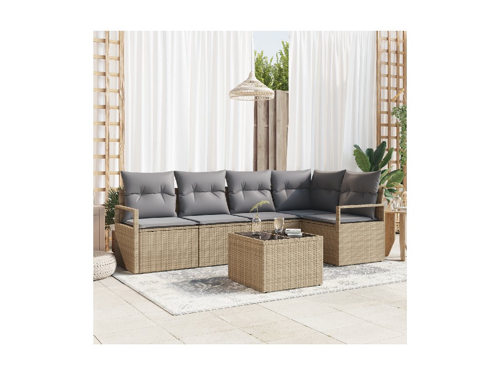 Sada zahradních pohovek s polštářem 6 pcs Béžová a Světle šedá
