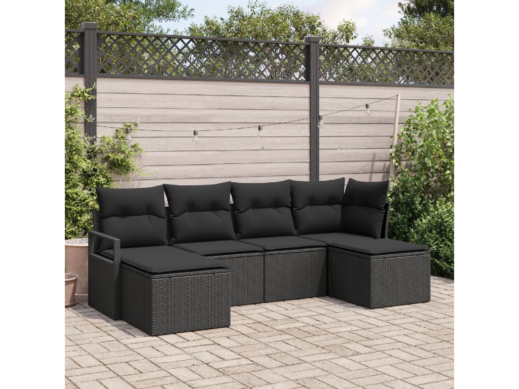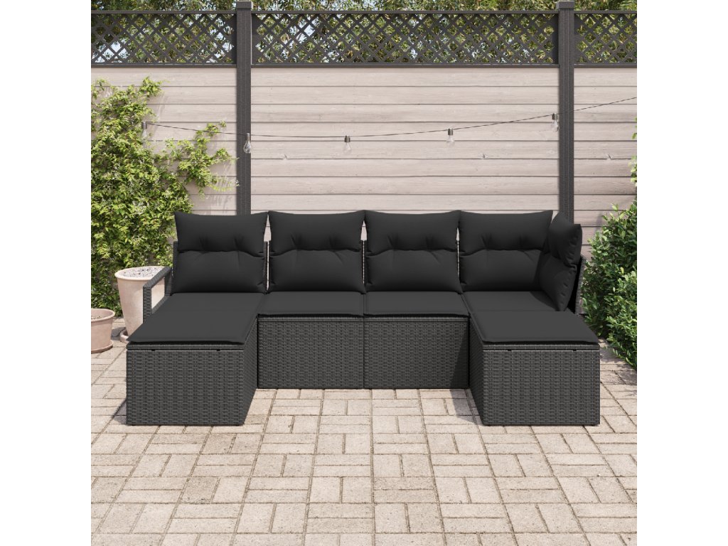Tkaný poly ratan: Tento sofa set má odolnou konstrukci, která odolává UV záření a zůstává v pěkném stavu i venku. Tkaná textura dodává šmrnc a zajišťuje pohodlí pro jakoukoliv zahradu nebo terasu. Modulární konfigurace: Modulární design sofa setu umožňuje flexibilní uspořádání do jakéhokoli venkovního prostoru. Můžeš přeskládat části, aby ses přizpůsobil jak malým shromážděním, tak větším akcím. Tato volnost ti dává variabilitu a maximalizuje pohodlí. Zpracovaný zadní panel: Všechny části sofa setu mají pečlivě navržený zadní panel, takže vypadá skvěle ze všech úhlů. Tato pozornost k detailům zabezpečuje, že set vypadá super i v rohu zahrady, a dodává kouzlo a spolehlivou akcentaci venkovního dekoru. Pohodlné polštáře: Silné pěnové polštáře nabízejí super pohodlí a promění tvůj venkovní prostor na útulné místo. Polštáře mají odnímatelné potahy se zipem, takže je snadné je vyprat a udržovat pro nerušený odpočinek. Praktické opěrky rukou: Ploché opěrky rukou z poly ratanu doplňují moderní design a nabízejí praktickou podporu pro dlouhé lenošení. Přítomnost opěrek rukou zvyšuje ergonomické výhody, takže je tenhle set skvělý pro relaxaci, povídání nebo čtení venku.- Barva: Černá