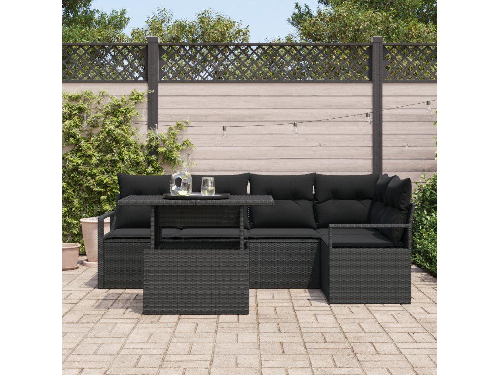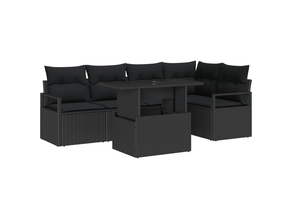 Sada zahradních pohovek s polštářem 6 pcs Černá polyratan