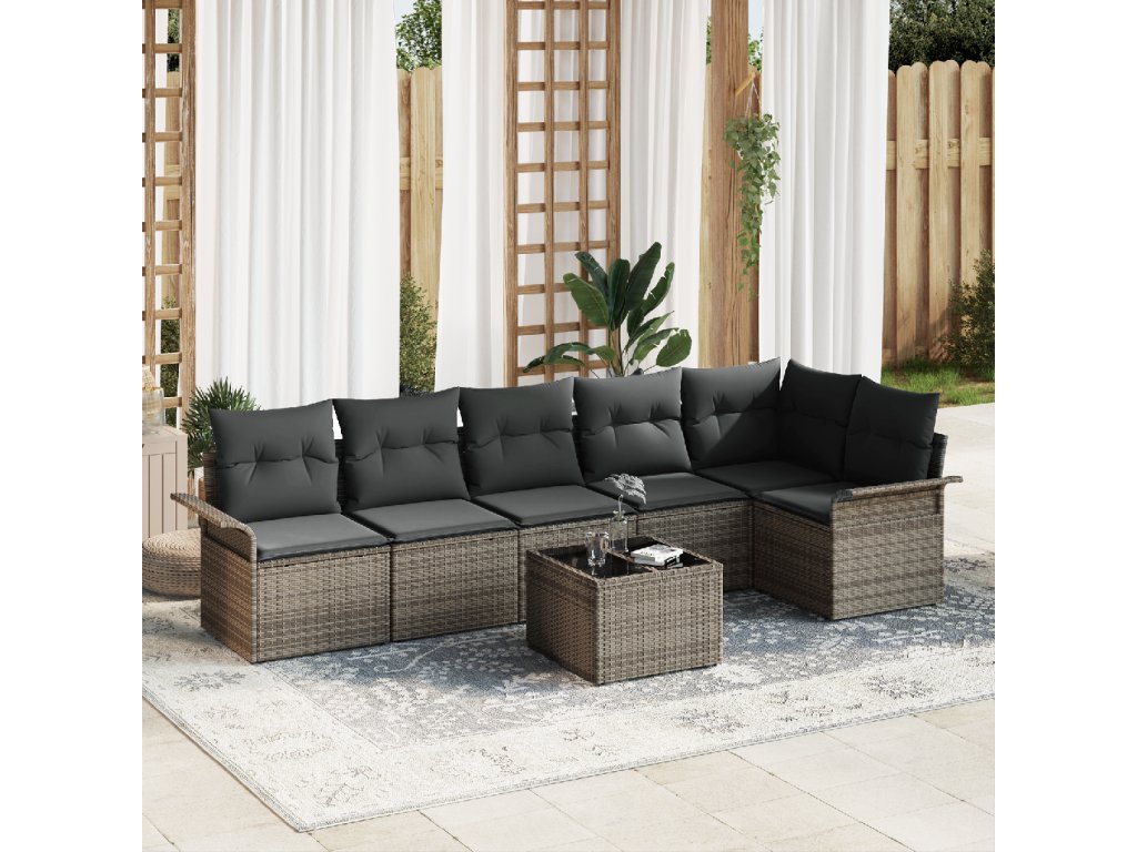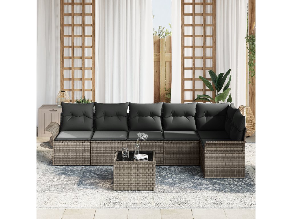 Sada zahradních pohovek s polštářem 7 pcs Šedá Poly ratan