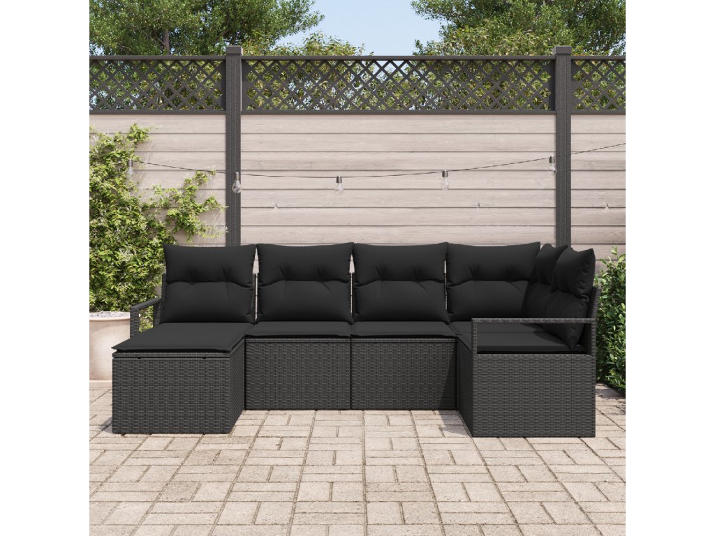 Set pohovek s polštářem s úložištěm 6 pcs Černá polyratan