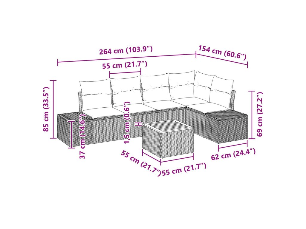 Sada zahradních pohovek s polštářem 6 pcs Černá Poly ratan