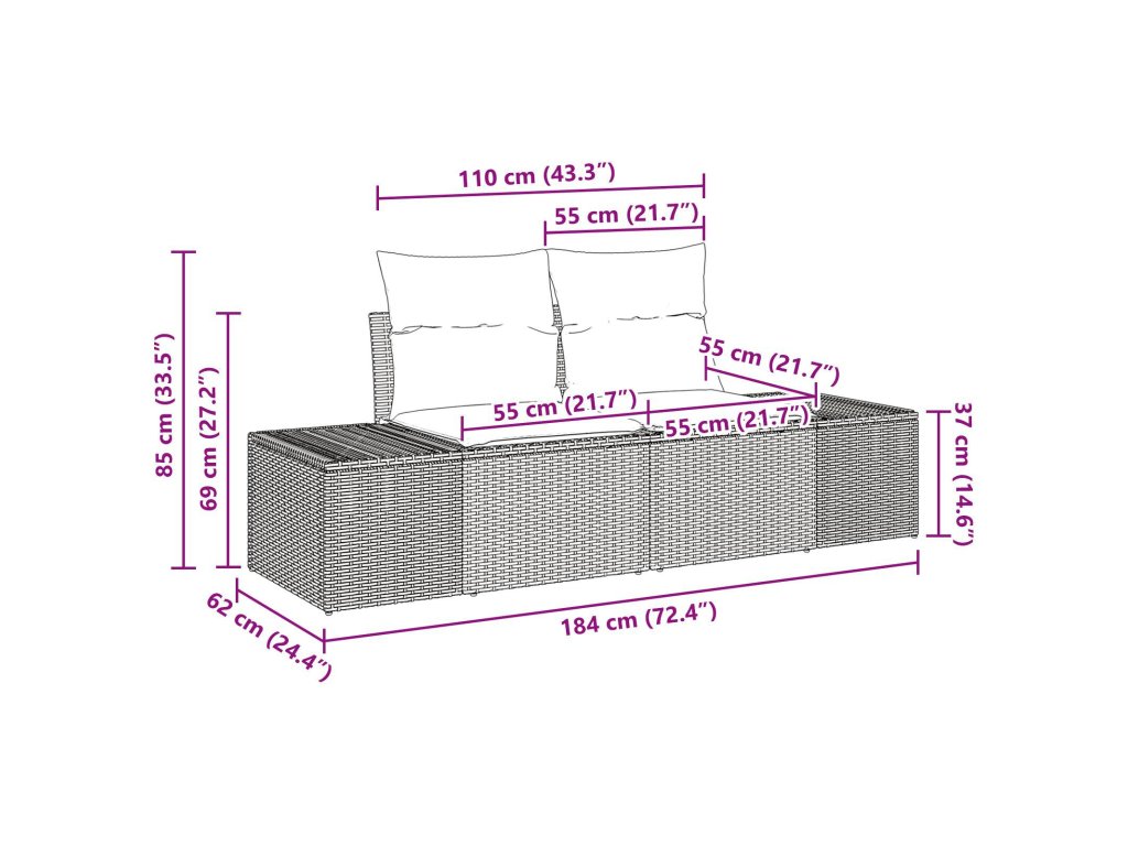 Tato sada zahradního nábytku slouží jako luxusní středový prvek pro jakoukoliv terasu nebo patio. Navržena s moderními prvky a tkaná z poly ratanu, odráží uvolněnou sofistikovanost vhodnou pro jakékoliv intimní setkání nebo živé oslavy. Její obdélníkový tvar, spolu s bohatou texturou a pevným vzorem, bezproblémově vylepšuje estetiku zahrady, což umožňuje majitelům ponořit se do její umělecké konfigurace a velkého pohodlí při sezení.