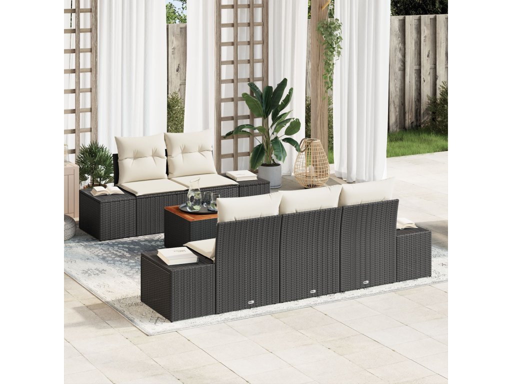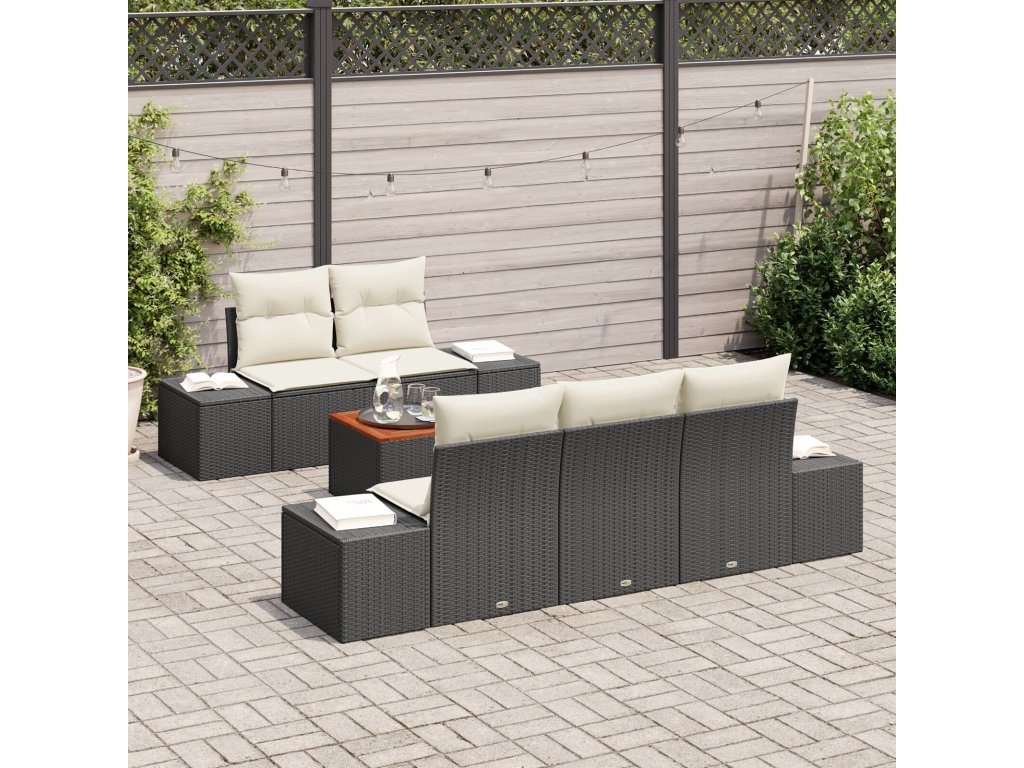 Sada zahradních pohovek s polštářem 6 pcs Černá Poly ratan